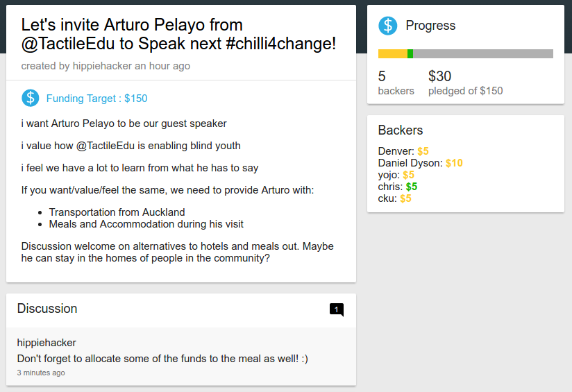If you want to @cobudget with us, write your email and #chilli4change on an physical envelope with your contribution and drop it by in person at 148 Durham Street, Tauranga.